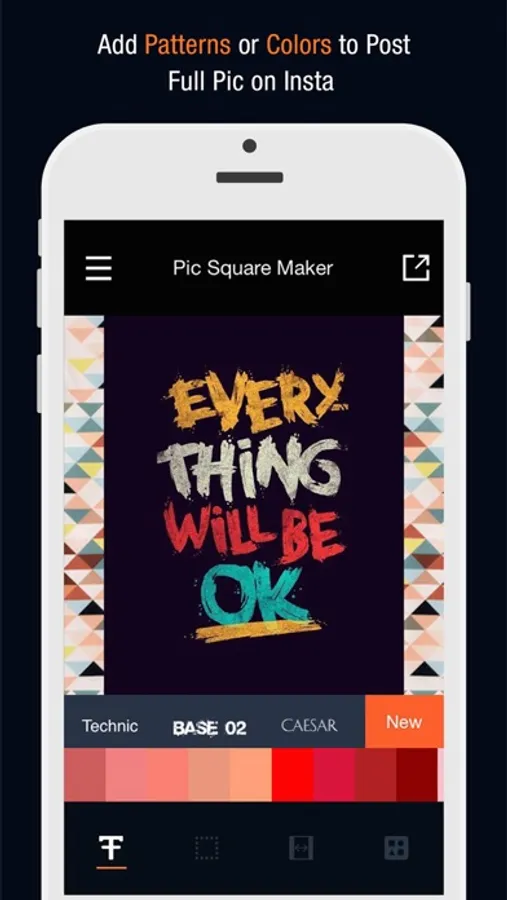 Add patterns or lines or colors to post full size photos on Instagram without cropping.