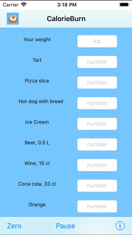 A pedometer to continuously calculate remaining calories to burn, in procent of eaten food, when walking . Choose among some common food types and amount.
