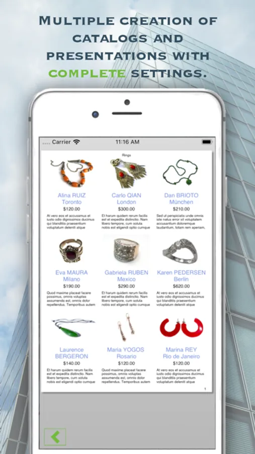 • unlimited creation of catalogs and presentations with complete and adaptable setting each time.