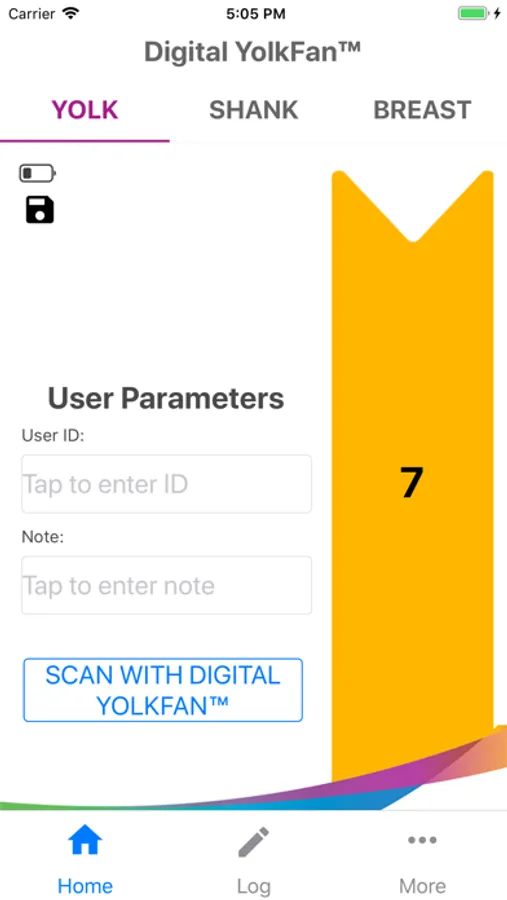 The Digital YolkFan™ app, when used together with the Digital YolkFan™ color sensor, allows for accurate scanning of egg yolk, chicken shank, and chicken skin.