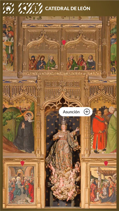 De funcionamiento fácil e intuitivo la aplicación permite descubrir cada uno de los detalles de la pintura y conocer su significado. Nunca has tenido tan cerca estas maravillosas y asombrosas escenas de una de las joyas de la pintura de la catedral leonesa.