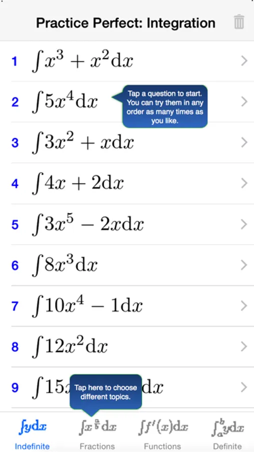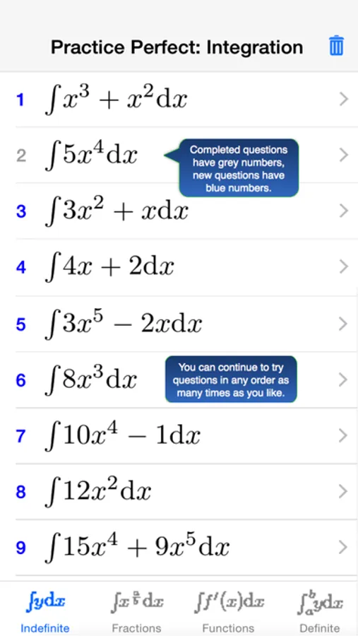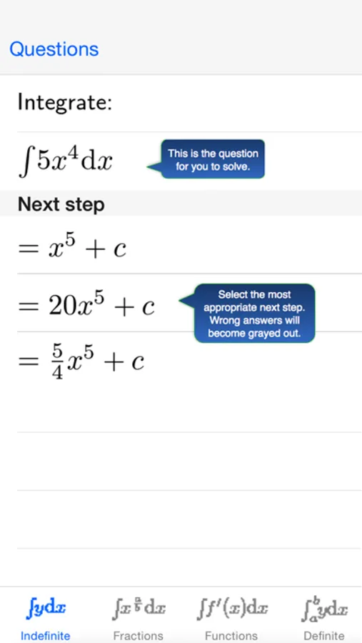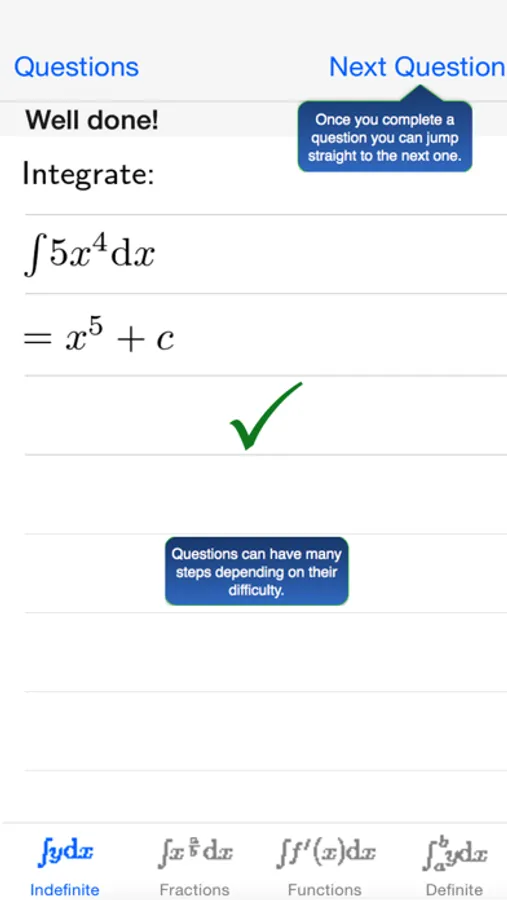 Boost your A-Level or pre-University exam preparation. This app contains the following topics: Indefinite Integration, Fractional Indices, Functions and Definite Integration. 30 questions per topic.