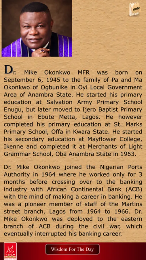 Wisdom for the Day is an inspirational daily devotional from the Presiding Bishop of TREM Worldwide, Dr Mike Okonkwo.