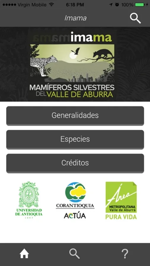 Imama, que significa tigrillo en lengua Embera, es una aplicación que le permite al usuario conocer la gran diversidad de mamíferos que posee el valle de Aburrá. En esta se encuentran agrupadas por nombre científico, nombre común y por categoría taxonómica las cien especies que hay registradas hoy en el valle; el usuario encontrará la información necesaria para identificarlas y conocer sus hábitos, su distribución, los sitios del valle donde se ha registrado y podrá ver imágenes y videos de ellas. Además encontrará información sobre cómo se registran y estudian los mamíferos y qué información posee esta publicación.