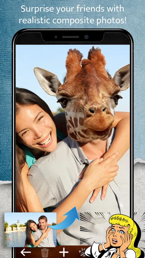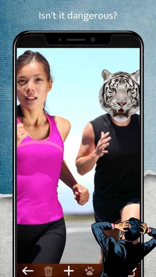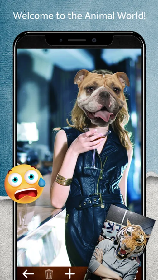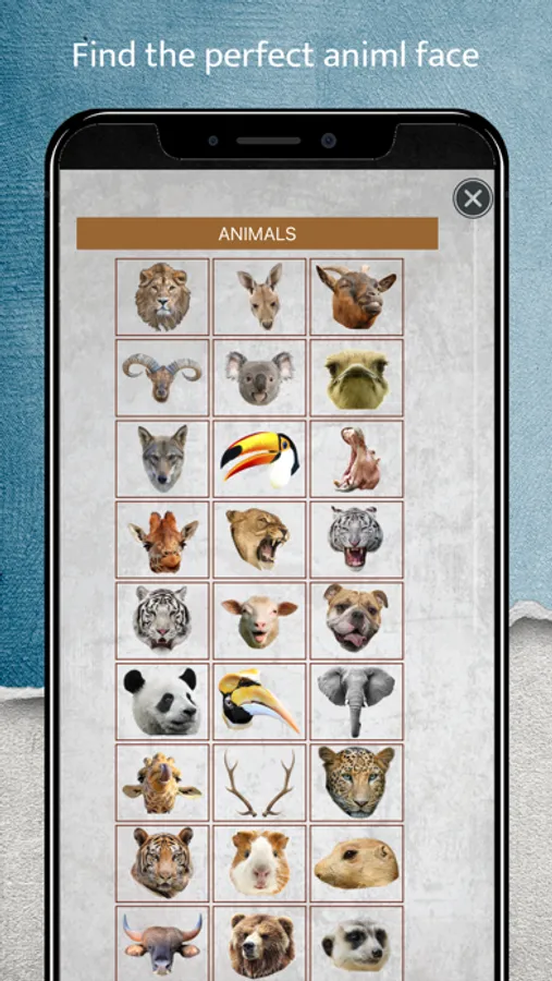 Enjoy more than 60 animal's face to paste on your photos. Tiger, lion, bear, giraffe, dog, gorilla, orangutan, rhinoceros, goat, deer, panda etc. And not just animals, surprising items such as deer horns, buffalo bones, snake, fish and dinosaurs are included!
