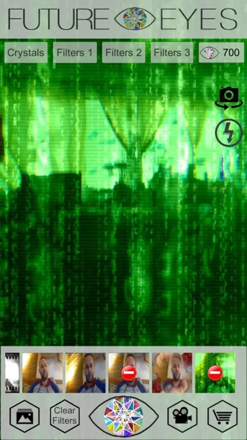 See the future through the kaleidoscopic lenses of the Future Eyes Crystal Photo App. Capture the effect of taking photos through crystals in this easy-to-use camera app. Choose from over 40 multifaceted filters to teleport photos to new optical dimensions. Layer filters to create even more effects.