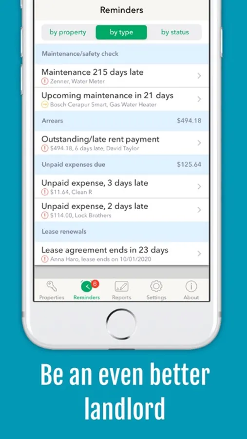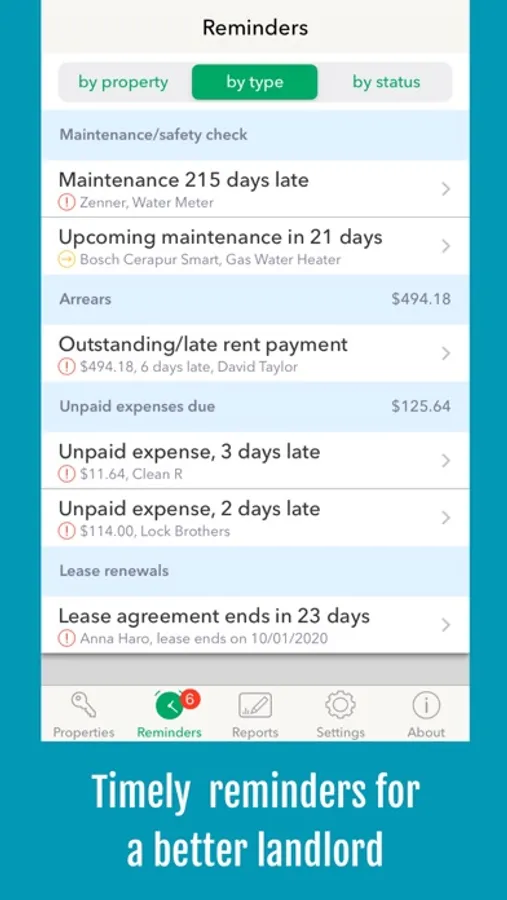 - Get reminders for outstanding payments and expenses due, lease agreement renewals etc.