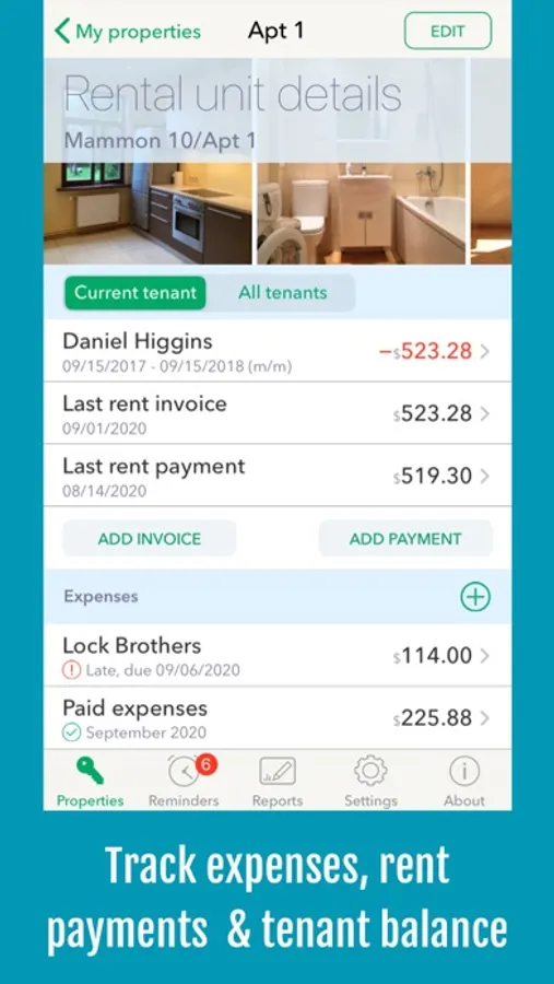 Manage your private landlord business – track tenants, rent payments, invoices and expenses, keep safety and maintenance records, track of tenant balance and payment history, get instant financial reports and useful reminders to be an even better landlord.