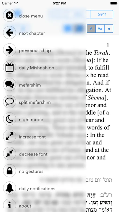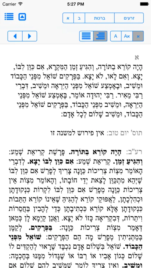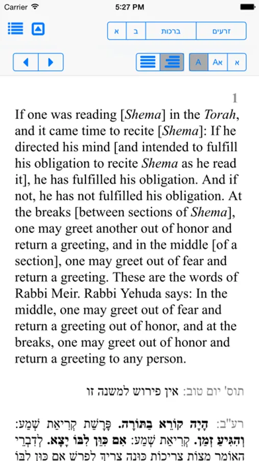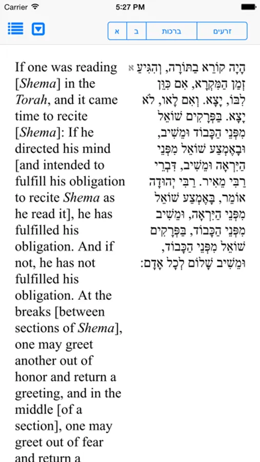 Mishnah to go from the creator of On Your Way, brings you the Mishnah with Sefaria project English translation, Bartenure and Tosfot Yom Tov (Hebrew)