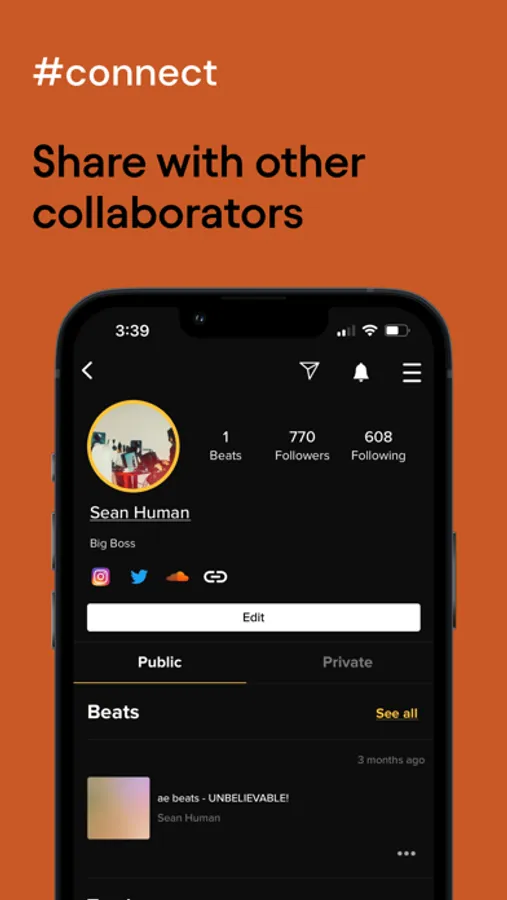 Once you've perfected your track, you can easily export it as a file or share it directly to your followers, social media, or Soundcloud. We even provide a library of visuals to use as videos on Instagram and Tik-Tok.