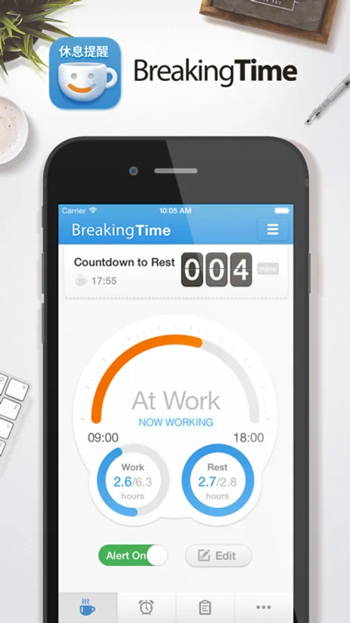 BreakingTime helps you improve your work habits, allows you to rest routinely during work, avoiding prolonged screen watching, sedentary lumbar injuries and other bad habits.