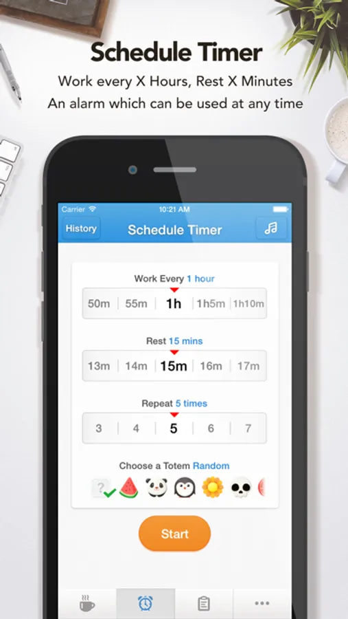 2. Work Timer: Work every X hours, Rest X minutes, an alarm which can be used at any time