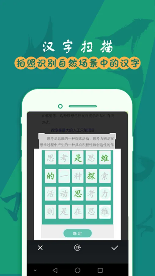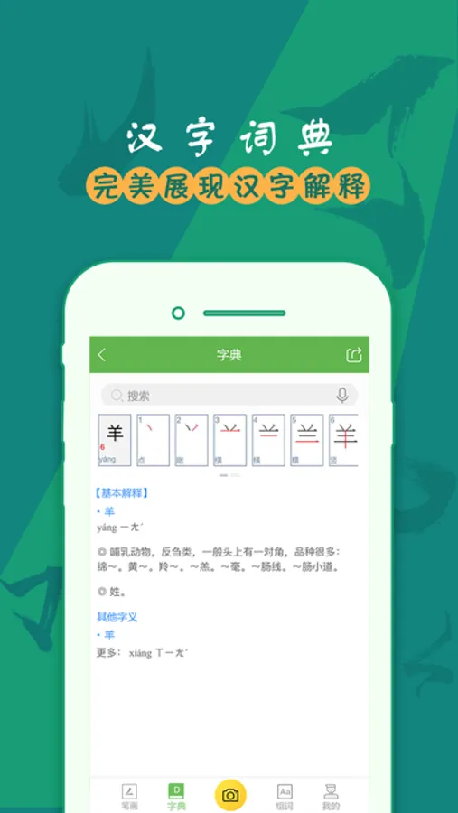 由于信息技术的发展,人们已经习惯于在电脑、平板电脑及手机上打字,而大部分人已经忘记汉字最基本的书写笔画及顺序,本款软件可以轻松搜索汉字的书写笔画和笔顺,通过对每个汉字每个笔画的拆解分析,使用户了解笔画顺序,在此软件中还增加动画书写笔画功能,更加生动形象的描绘每个汉字的笔画、笔顺和精髓。该软件的主要目的是帮助刚刚起步学汉字的小学生和老外了解每个汉字的书写顺序,为学习汉字打下扎实的书写基础。