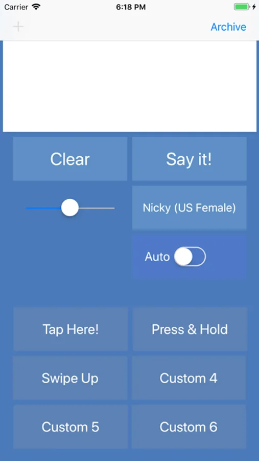 • Long press any custom button to set a descriptive title, custom phrase, and set the desired voice.