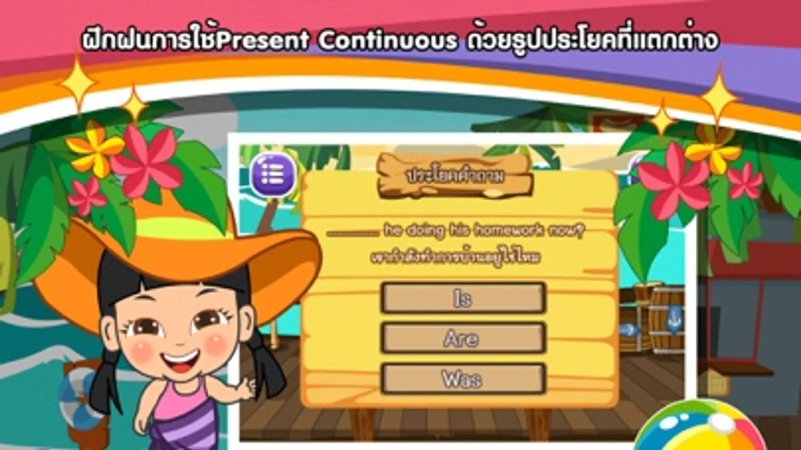 - ฝึกฝนการใช้Present Continuous Tense ในรูปประโยคบอกเล่า ประโยคคำถาม และประโยคปฏิเสธ ผ่านแบบฝึกทักษะ และเกม