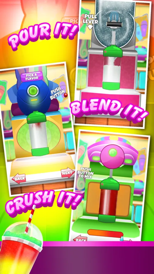 Let’s make a Slushie!! It’s fun and it’s easy! Pour in the icee mix, mix in your favorite flavor, grab a cup, a straw, a cap, a decal and you are ready to drink your Slushie!