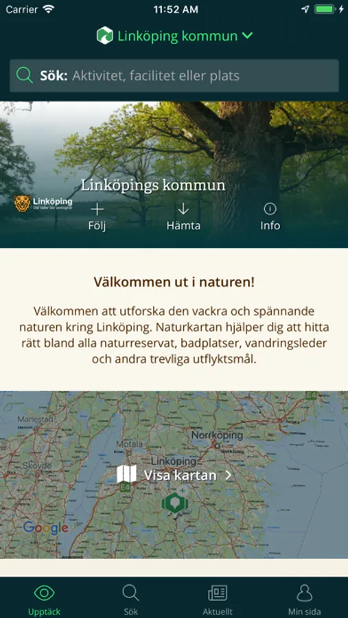 Guide till naturen i Linköpings kommun. Vandringsleder, naturreservat, entréer och besöksvärda platser presenteras med vackra bilder och beskrivande texter.