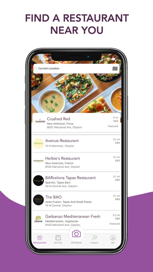 How does it work? Restaurants pay to be on our app as a mix of marketing and giving back - it’s free for you! Anytime you take a photo at one of our participating restaurants, GiftAMeal makes a donation to a local food bank. These donations go towards distributing nutritious food to neighborhood pantries where those in need can access it.