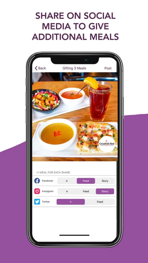 Simply take a photo on the GiftAMeal app at a participating restaurant to provide a meal to someone in need in your community. Share your picture on social media to give additional meals! Your photo can be of food, drink, a receipt, friends, something cool at the restaurant, or even a selfie.