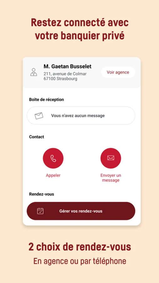 - Prise de rendez-vous et rendez-vous avec votre banquier privé, en visio, en agence ou par téléphone.