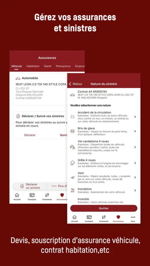 - Déclaration et suivi de sinistres automobile ou habitation.