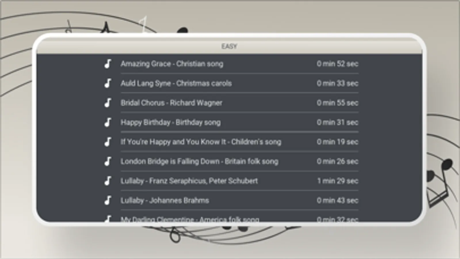 In Play Mode you can play without the help of our piano tutorial and record music, you can choose to only record audio or to record video view of screen and audio as you play. Recorded music files can be shared with family, friends and loved once.