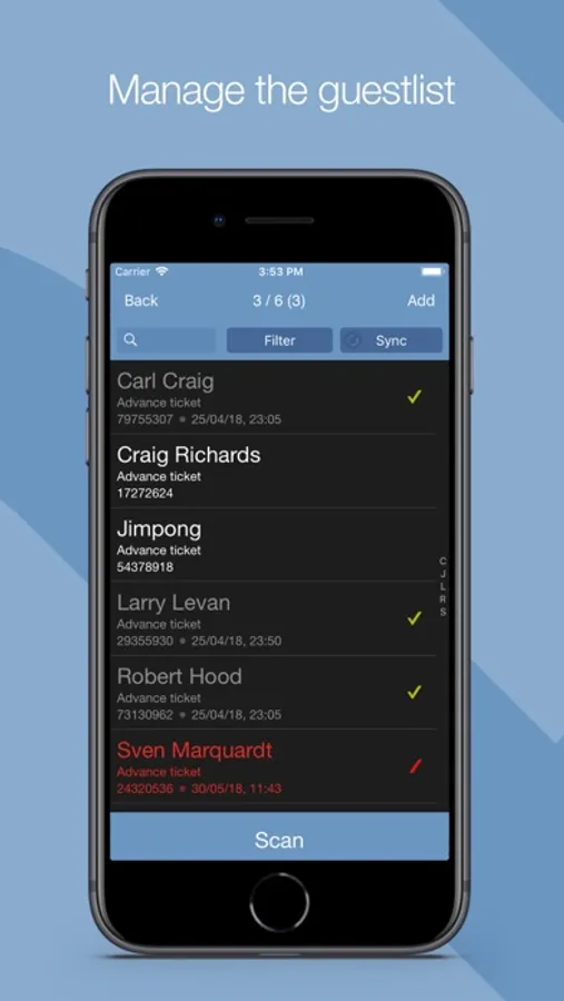 - Live syncing between devices means multiple users can manage entry to your venue.