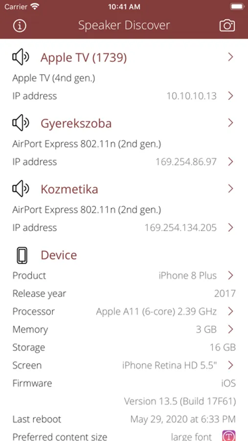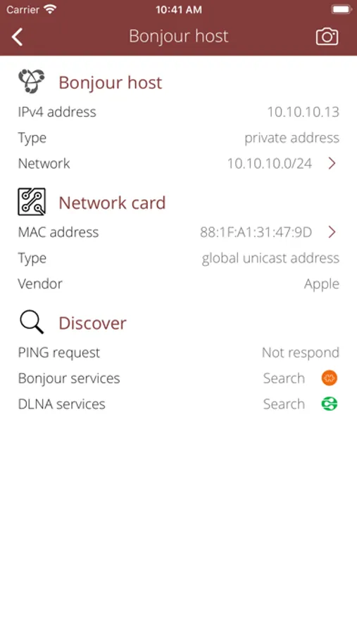 • Detect further Bonjour services on wireless speaker with detailed informations.