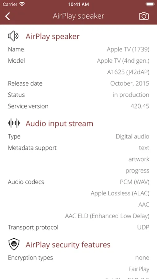 • Detect device vendor, model, type. Common AirPlay devices:
