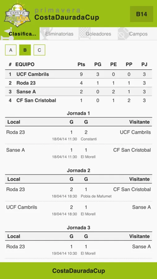 Podrás estar al día de los resultados, la clasificacion, los goleadores, los campos donde se disputa así como las noticias,...