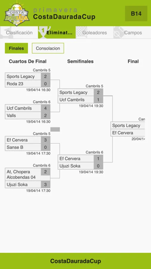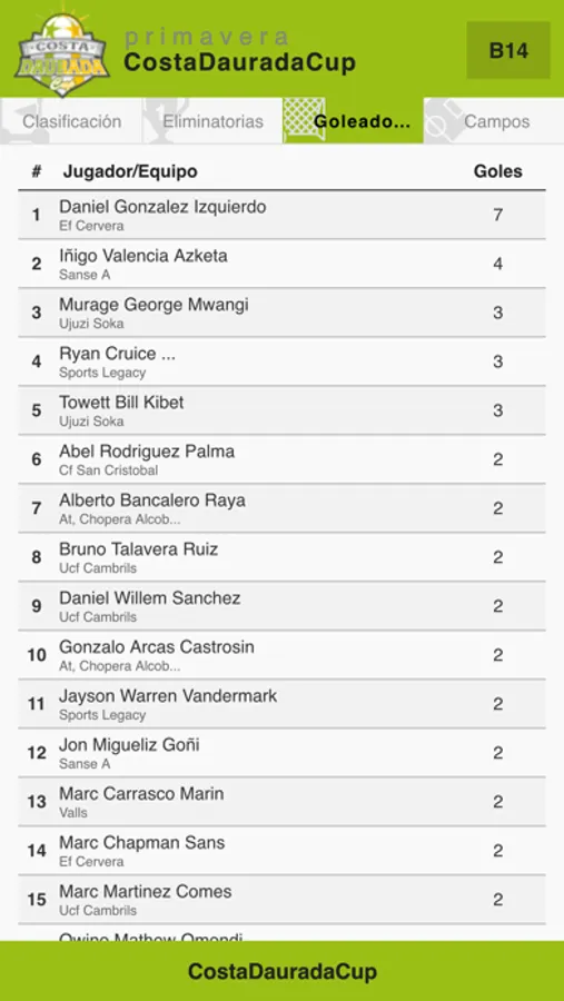 Consulta toda la información del campeonato CostaDauradaCup, tanto en su edición de primavera como en su edición de verano.