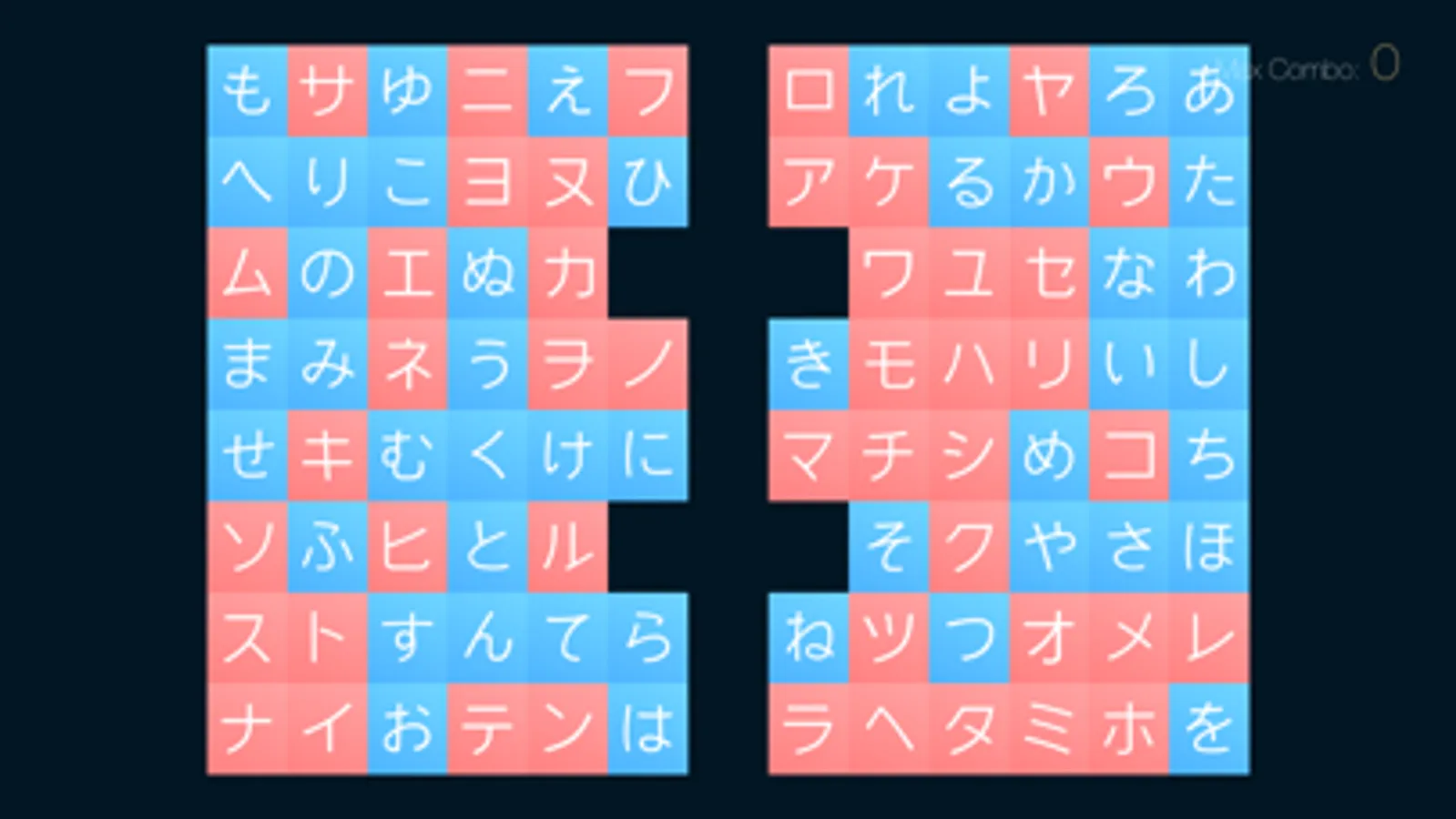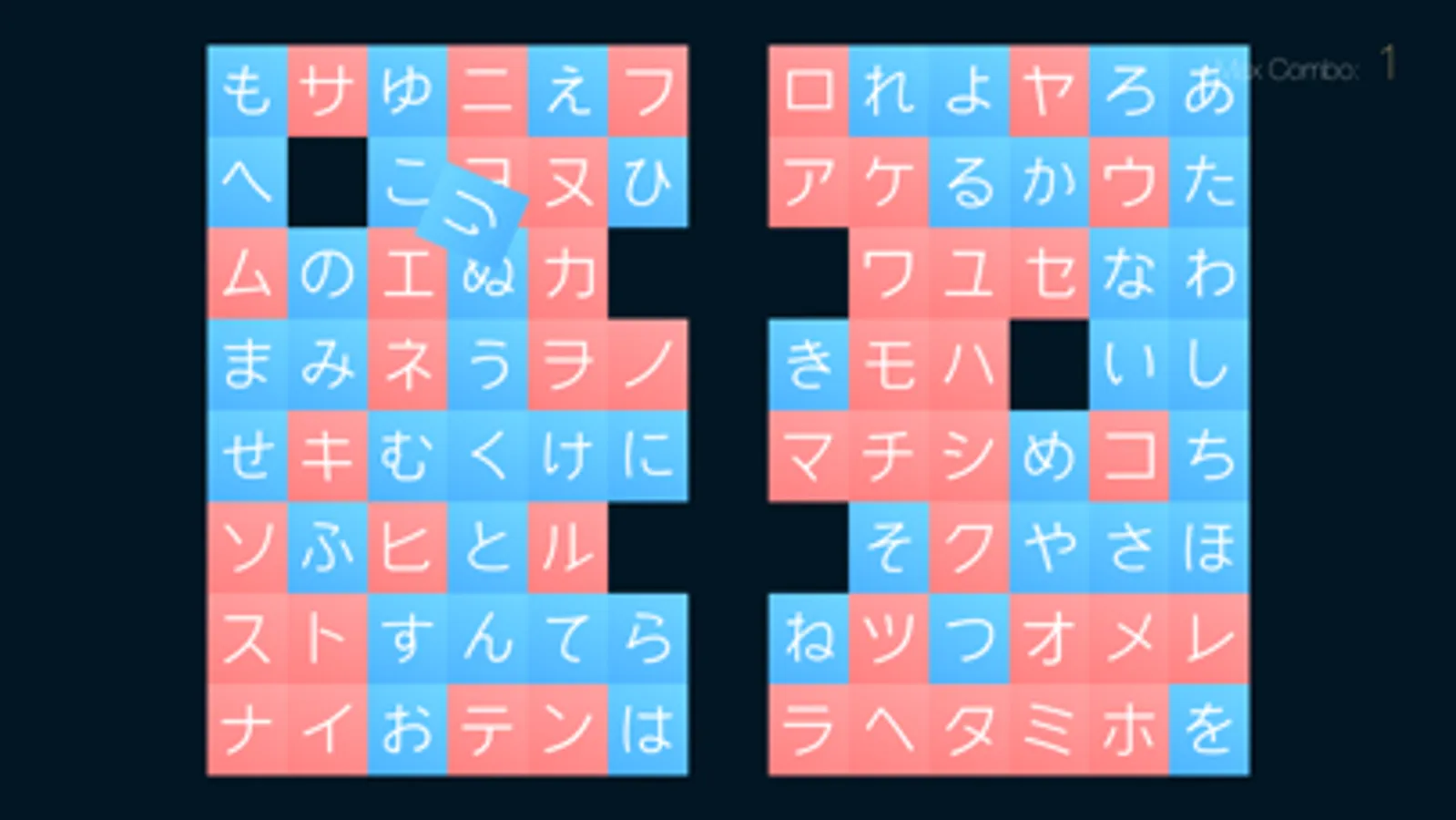 Match the corresponding hiragana and katakana with your fingers to erase them, and do it as fast as you can to get combos and achieve achievements.