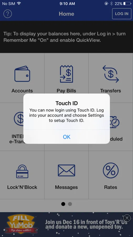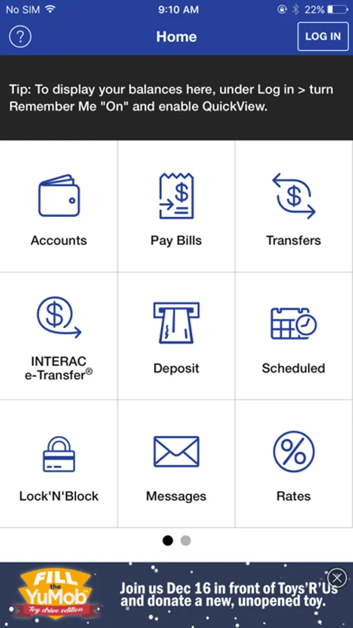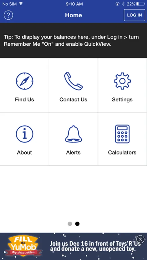 To take advantage of the full functionality of this app, you must already be registered and have logged in to online banking. If you are not an online banking member, you can still use the Branch/ATM locator, Rates and our Contact Us information.
