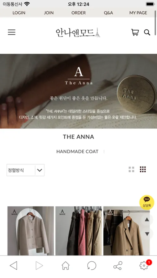원단이 좋은 안나앤모드 모바일앱입니다.