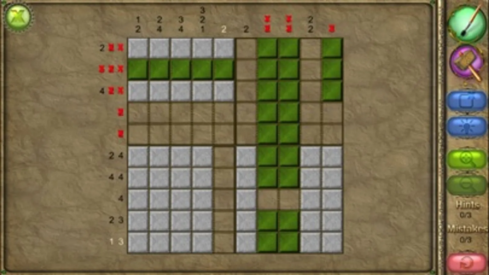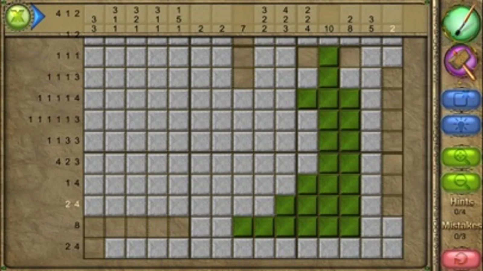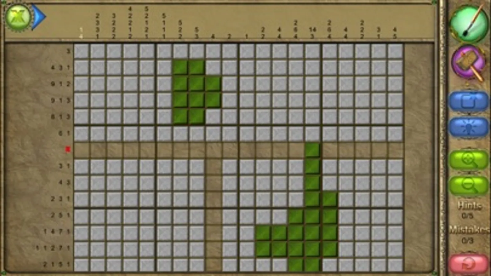 An old Japanese logic puzzle takes on a new look with FlipPix Jigsaw! Touch tiles to paint them or break them to form colorful images. The goal is to use logic to determine which tiles should be filled to reveal a hidden picture.