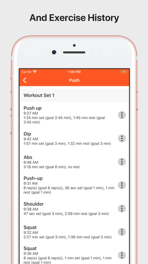 - Custom set and rest duration (or no rest) for each exercise with duration goal