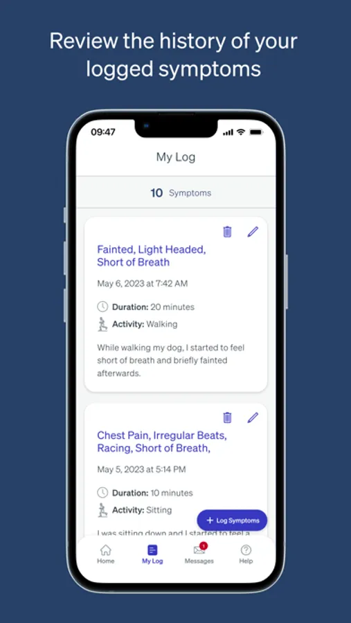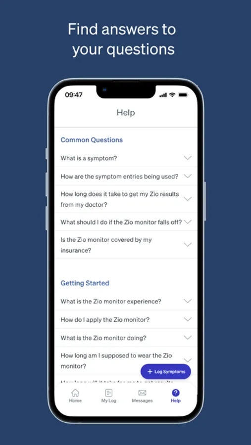 • Seamlessly register your Zio ECG monitor and start logging symptoms.