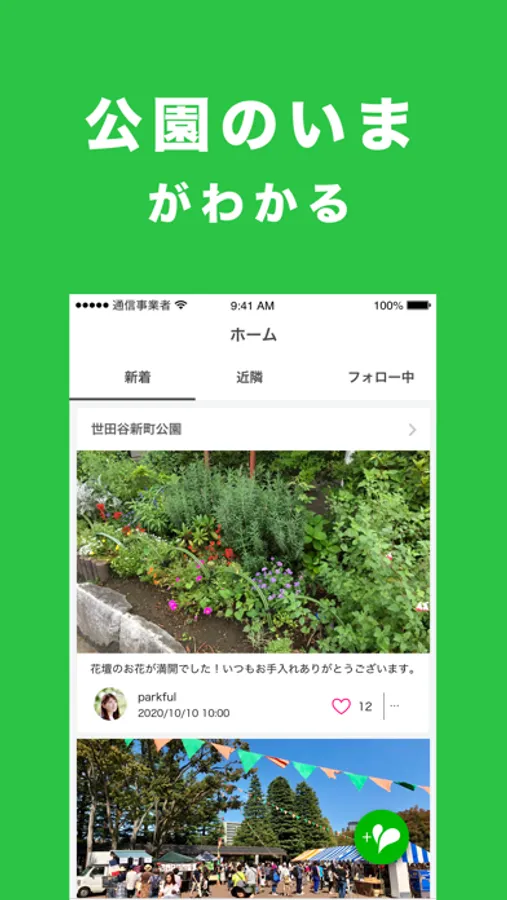 > 新着のみんなの投稿が表示されます。旬な公園の情報や変化をお楽しみください!