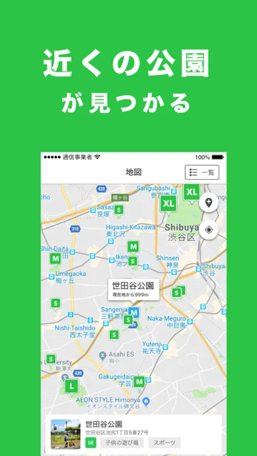 > 地図を使えばでちょっとした旅先で身近な公園を探すことができます。