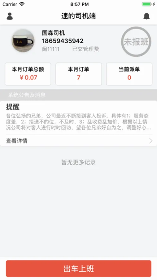 便捷的出车收班操作,人性化的接单设置,高效流畅的接单体验。