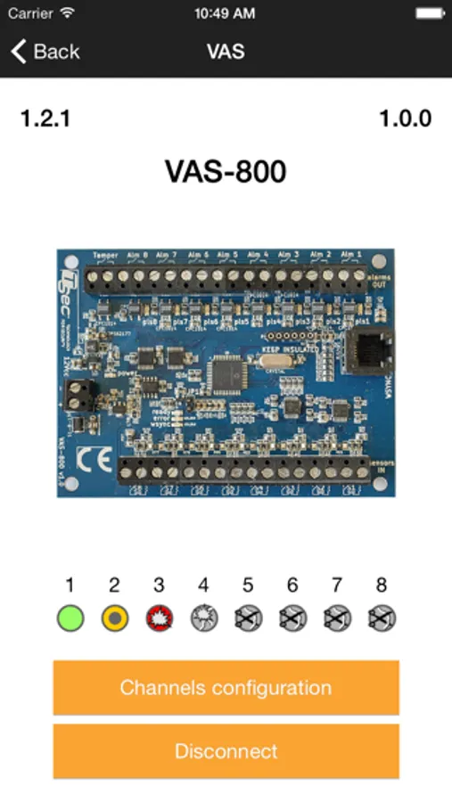 - Remotely configures VAS boards: enable/disables channels, set sensitivity parameters, firmware update, review and update security parameters