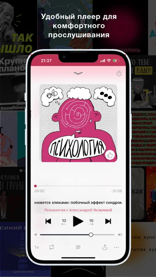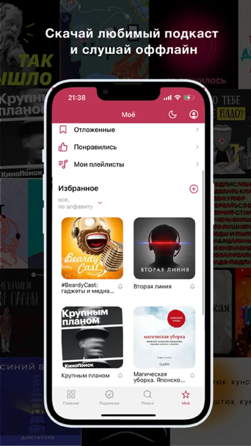 Отложи или скачай любимый подкаст себе на устройство и слушай offline.