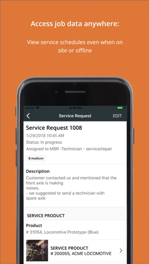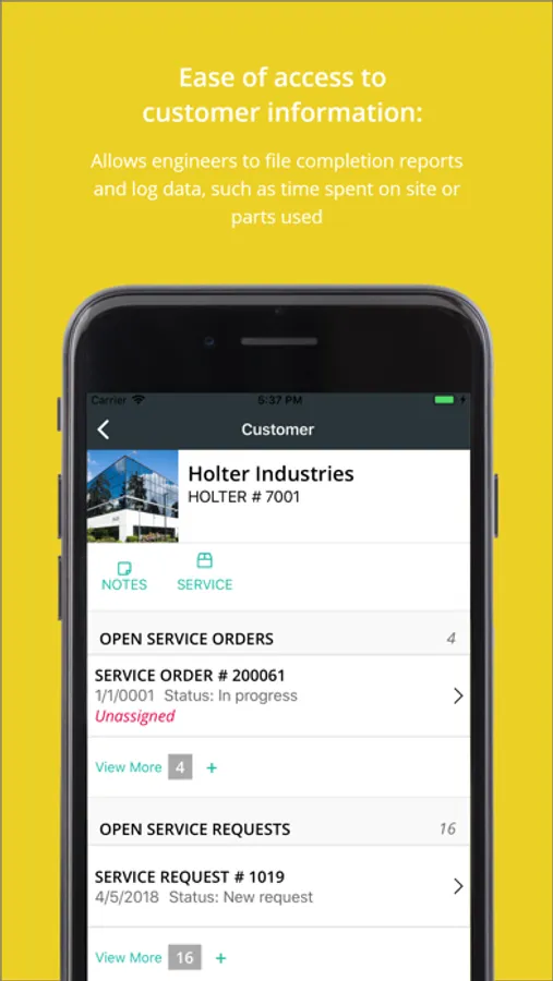 The Service mobile app gives service technicians the ability to view service requests on site from their mobile device, and file completion reports so managers have visibility into their progress. The app also allows service technicians to view their schedule, and make adjustments if necessary, while they’re on site.