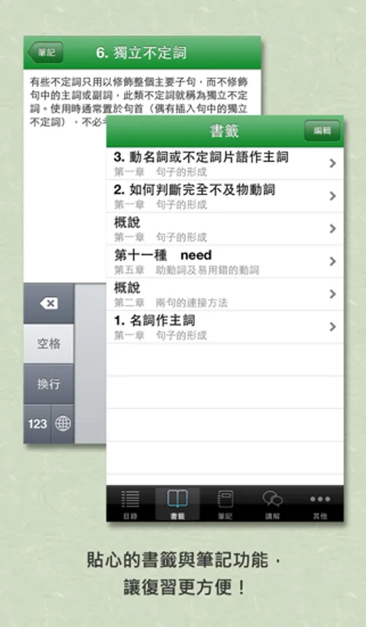 4.書籤:將重要學習內容標以書籤,方便日後反覆復習。
