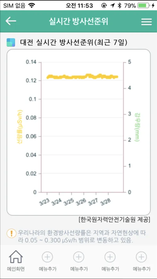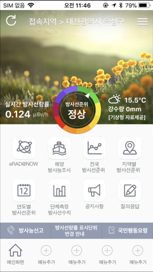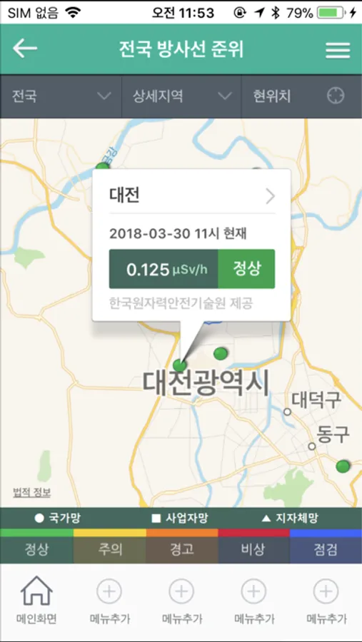 우리나라 전역의 실시간 환경방사능 수치와 안전도를 제공하고 환경방사선/능에 대한 국민안심과 원자력 안전의 국민신뢰 확보를 위해 제작되었습니다.