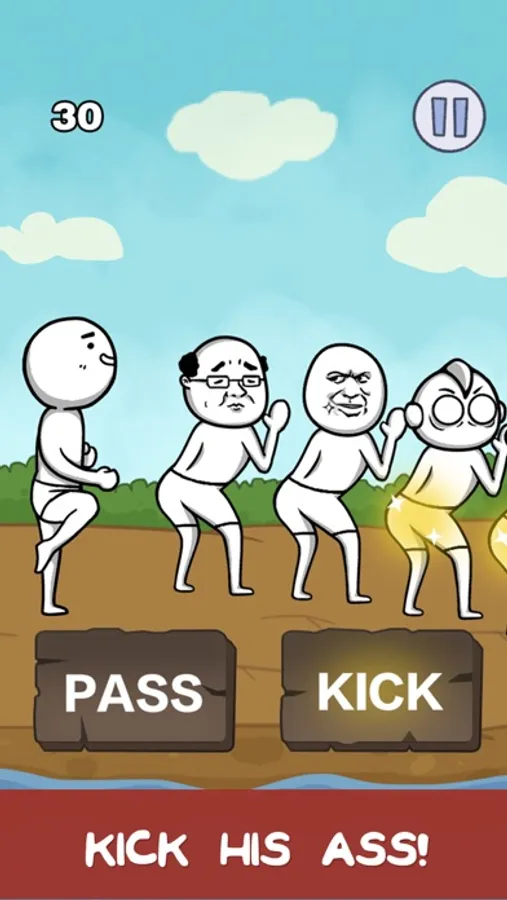 By tapping the screen to kick the right person, watch out! Don't kick wrong person since they are stand in the same line too. It sounds easy, but it's hard to figure out which one should get kick and which one shouldn't with in a limit time. Try to challenging your reaction speed and relief your pressure.