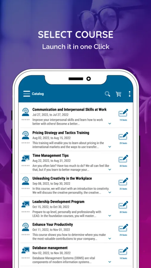● Browse training catalog, view popularity and register for courses