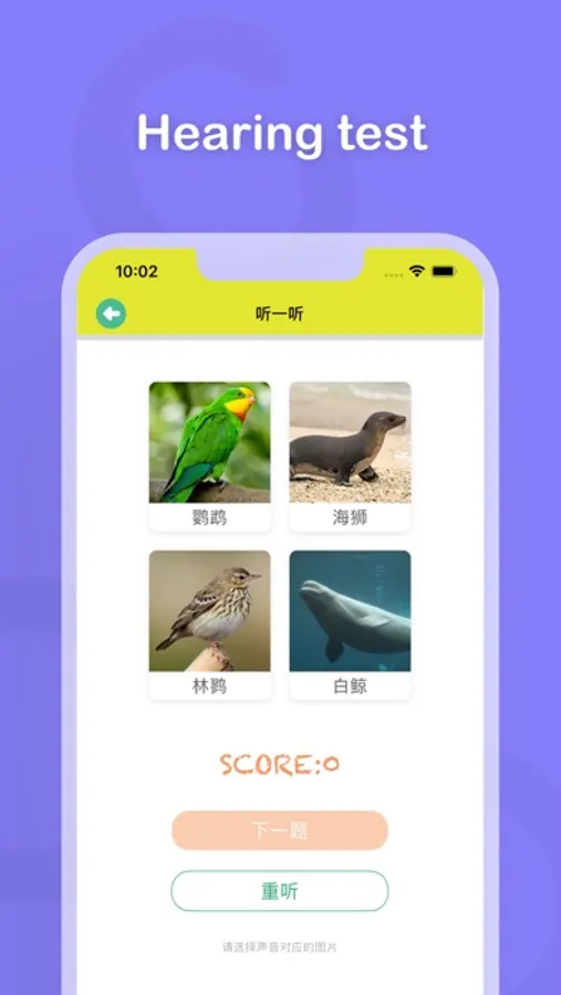 This app provides sounds from animals all over the world, including birds in the sky, crawling animals on the ground, fish from the sea, and tiny insects, all of which can be found here. With this app, you can let your baby learn the sounds of various animals in nature, and this app also provides beautiful animal pictures. In addition, in order to increase children's understanding of animals, this application also provides hearing tests, animal jigsaw and other functions to help children further understand animals.