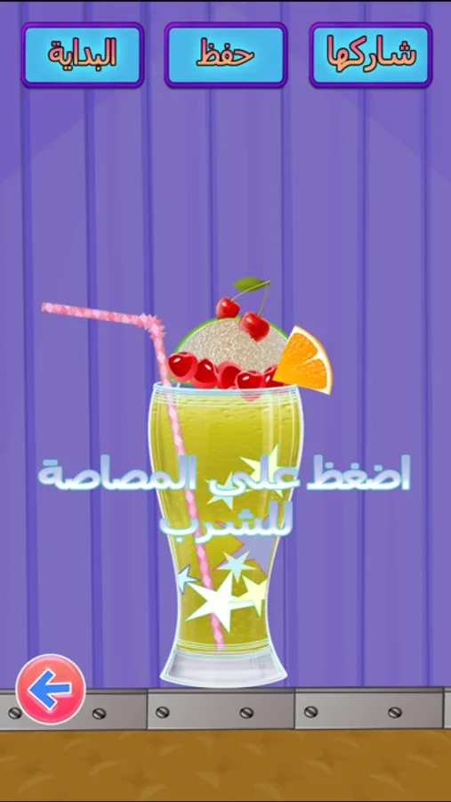 اسكب الماء - اختر النكهة - اخلط الماء والنكهة بالملعقة - اختر الكأس وزينه ..