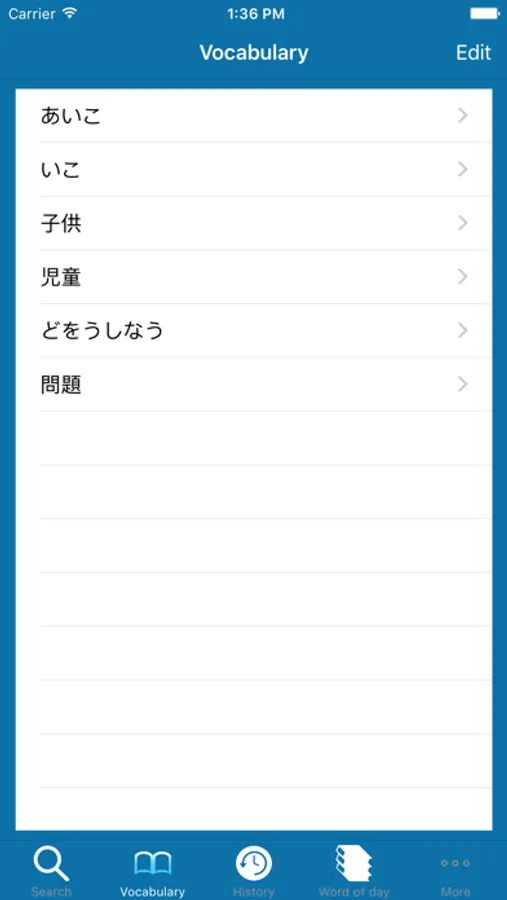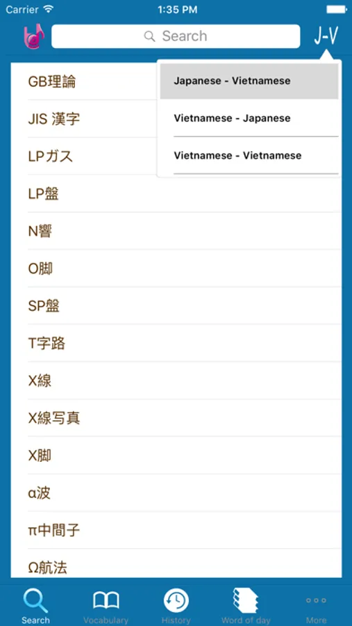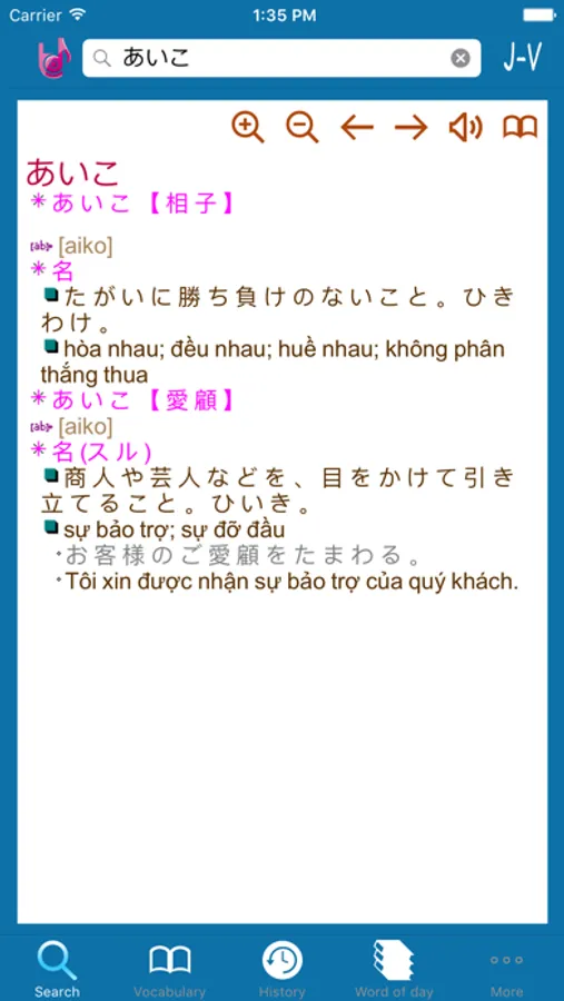 - Each item has its pronunciation, transcription, meanings, examples, compound words, related entries/items…